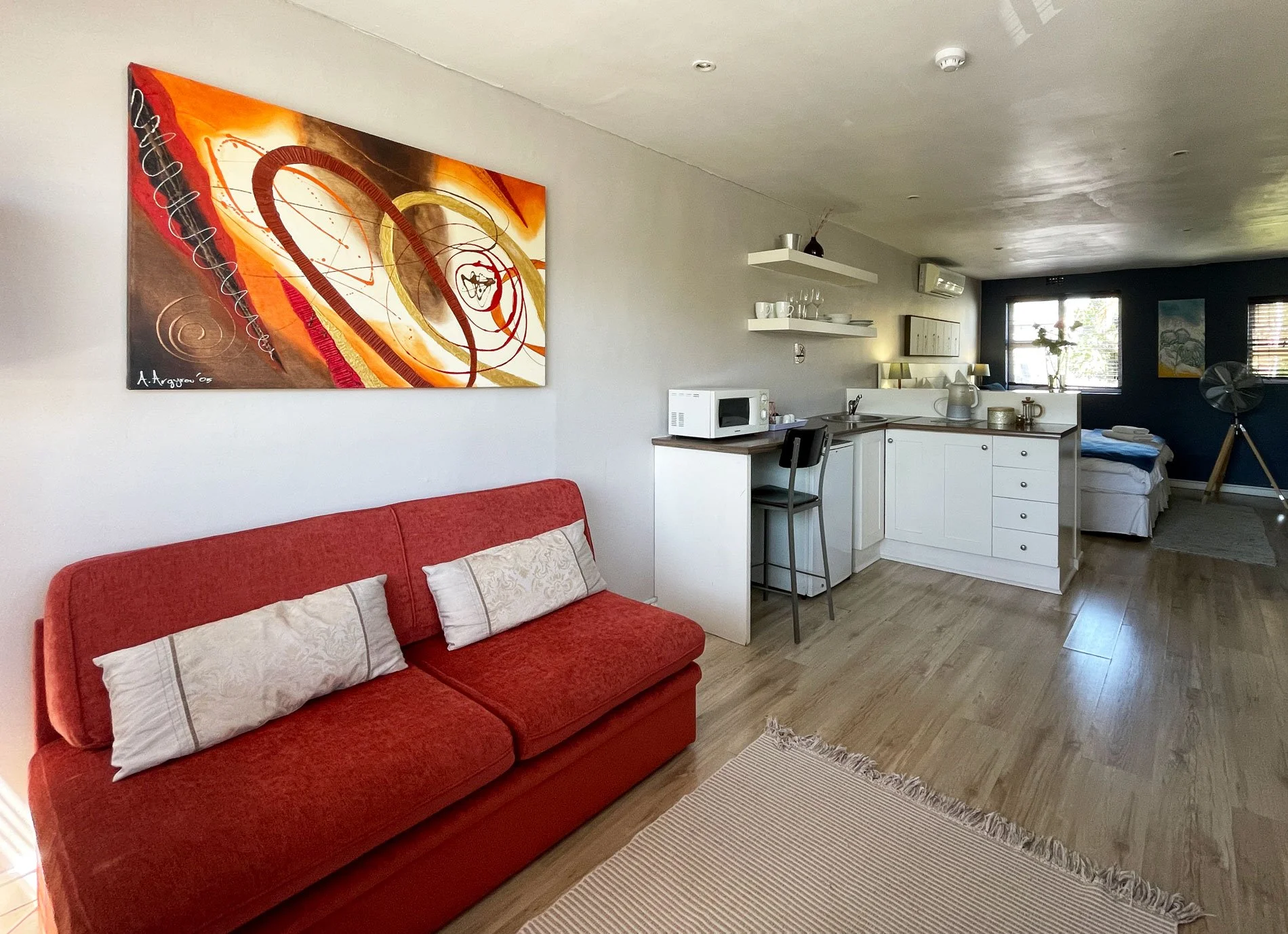 six is a cozy, tranquil upstairs studio with lounge and kitchenette. Sunny in the morning and evening with views of Sea Point and Lions head. A separate entrance and a certain spaciousness create a perfect retreat for work or after an eventful day exploring Cape Town.